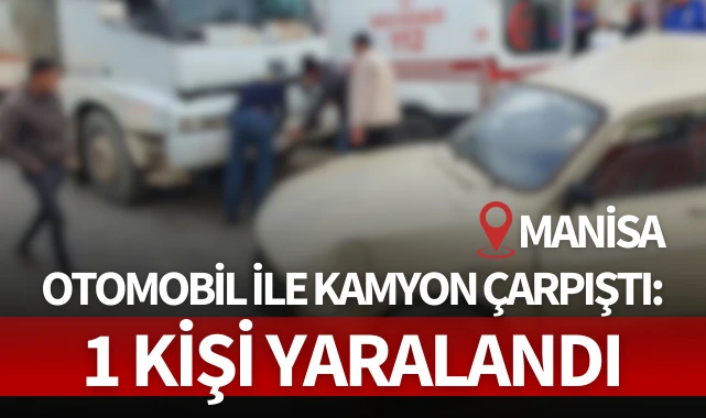 Manisa'nın Demirci ilçesinde hafriyat kamyonu ile otomobilin çarpışması sonucu 1 kişi yaralandı.