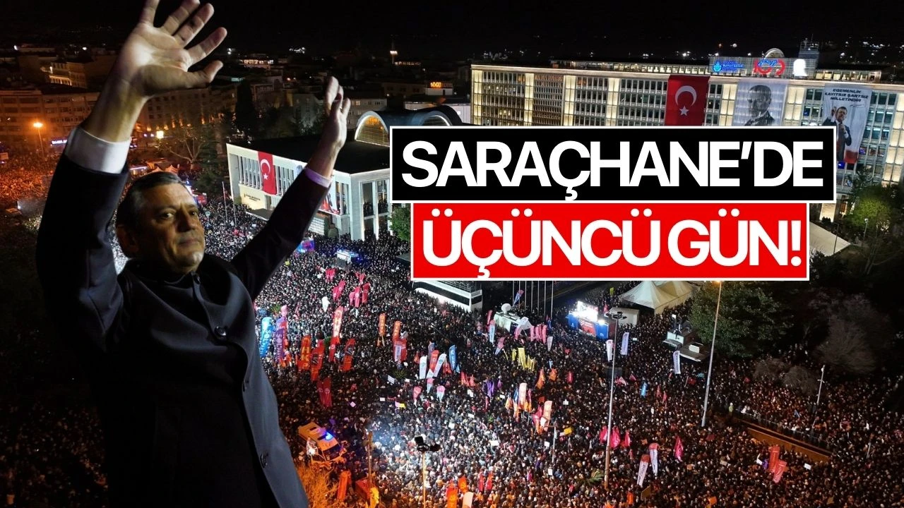 Saraçhane'ye bir toplantı yapmaya değil eylem yapmaya, sonuç almaya geldiklerini söyleyen Özel, birkaç gündür İmamoğlu ile dayanışma, demokrasiye sahip çıkmak için Saraçhane'ye gelen tüm siyasi parti ve oluşumları selamladığını kaydetti.
