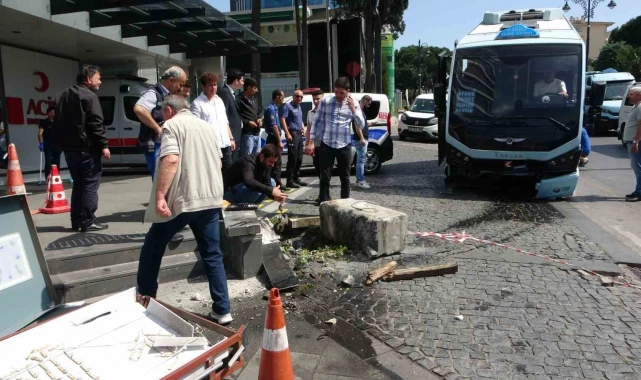 Pendik'te freninin patlamasıyla yol üzerindeki hastanenin girişine doğru savrulan minibüs, kaldırımda bulunan reklam panosuna çarparak durdu. Minibüs şoförü ile yolcu kazayı yara almadan atlatırken şoför kısa süreli şok geçirdi.