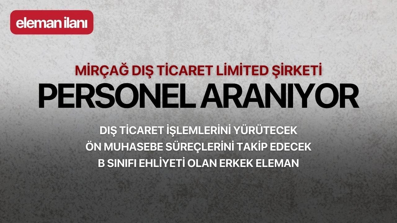 Şirketimizde dış ticaret işlemlerini yürütecek, ön muhasebe süreçlerini takip edebilecek deneyimli, B sınıf ehliyet sahibi olan bay eleman arıyoruz.