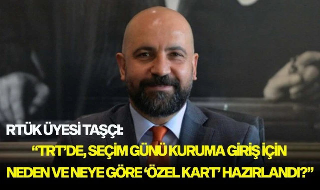 Radyo ve Televizyon Üst Kurulu (RTÜK) Üyesi İlhan Taşcı, “TRT’de, seçim günü kuruma giriş için neden ve neye göre ‘özel kart’ hazırlandı? Görevli kurum personelinin zaten kurum giriş kartı var. Kurum giriş kartından daha özel bir karta niçin ihtiyaç duyuldu? Görevli olup özel kartı olmayanlar kuruma neden giremeyecekler” dedi.