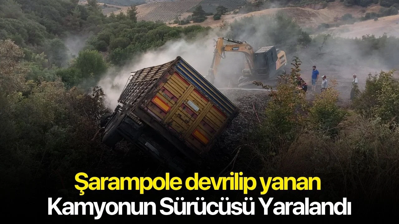 Mehmet Ay idaresindeki ve plastik atığı yüklü 64 ACD 079 plakalı kamyon, Gökköy Mahallesi Hacıoğlu mevkiinde şarampole devrildikten sonra alev aldı.