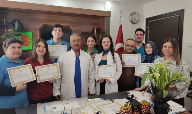 Kahramanmaraş depreminde bölgede görev yapan Sarıgöl Devlet Hastanesi'ni personeli, Sarıgöl Kaymakamı Ali Arıkan tarafından başarı belgesi ile ödüllendirildi.