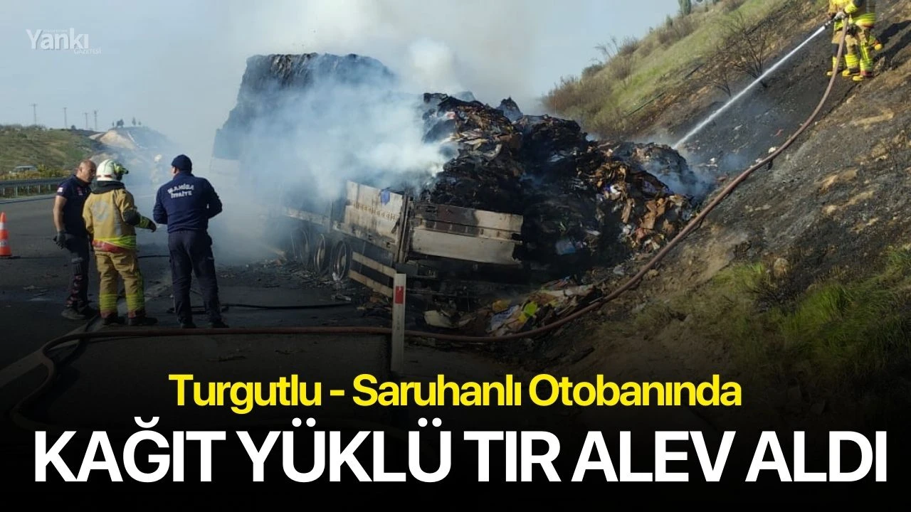 Turgutlu ile Saruhanlı arasındaki otobanda seyir halindeki kağıt yüklü bir tırda yangın çıktı. Henüz belirlenemeyen bir nedenle başlayan yangın, kısa sürede tırı sardı.