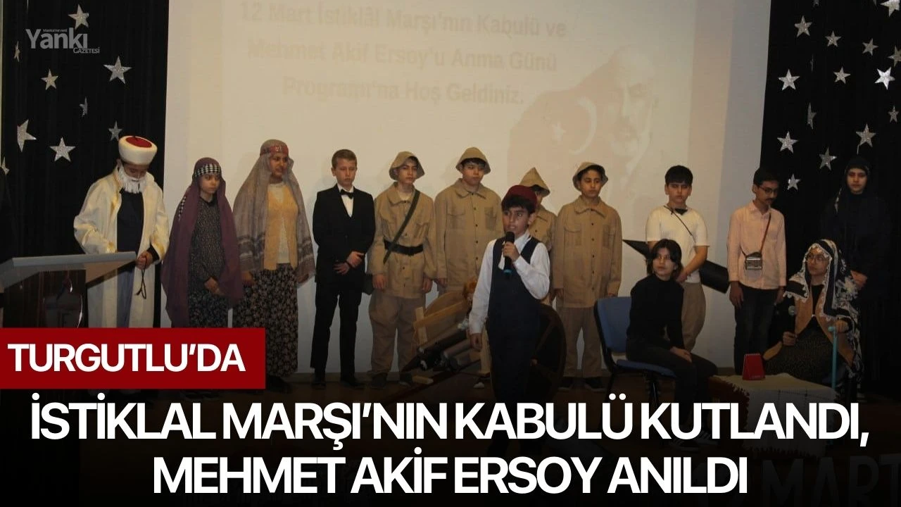 Ardından, İhsan Erturgut Ortaokulu Müdürü Kadir Selahattin Karabacak, günün anlam ve önemini belirten bir konuşma yaparak, ardından “Mehmet Akif Ersoy ve İstiklal Marşı” konulu sinevizyon gösterisi gerçekleştirildi. İhsan Erturgut Ortaokulu Özel Eğitim Sınıfı öğrencisi Adem Yoldaş, Mehmet Akif Ersoy’un “Uygun” adlı şiirini okudu. Daha sonra, İhsan Erturgut Ortaokulu öğrencileri “Akif Nağmeler” adlı oratoryo gösterisini sundu ve okul öğrencisi Dicle Ergin, Mehmet Akif Ersoy’un “Cenk Marşı” şiirini okudu.