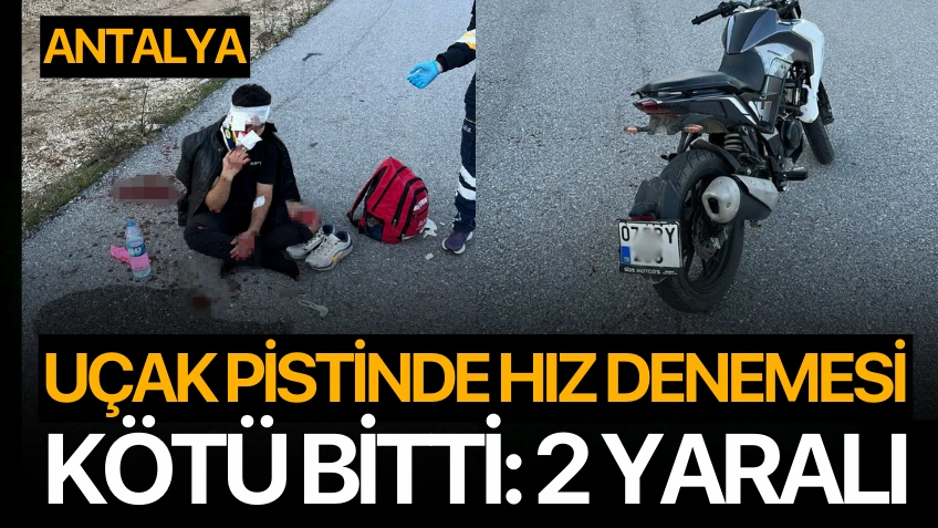 Antalya’da Manavgat Orman İşletme Müdürlüğüne ait uçak pistine girerek hız denemesi yaparken kaza yapan motosikletin sürücüsü ve motosiklette yolcu olarak bulunan 2 kişi yaralandı.