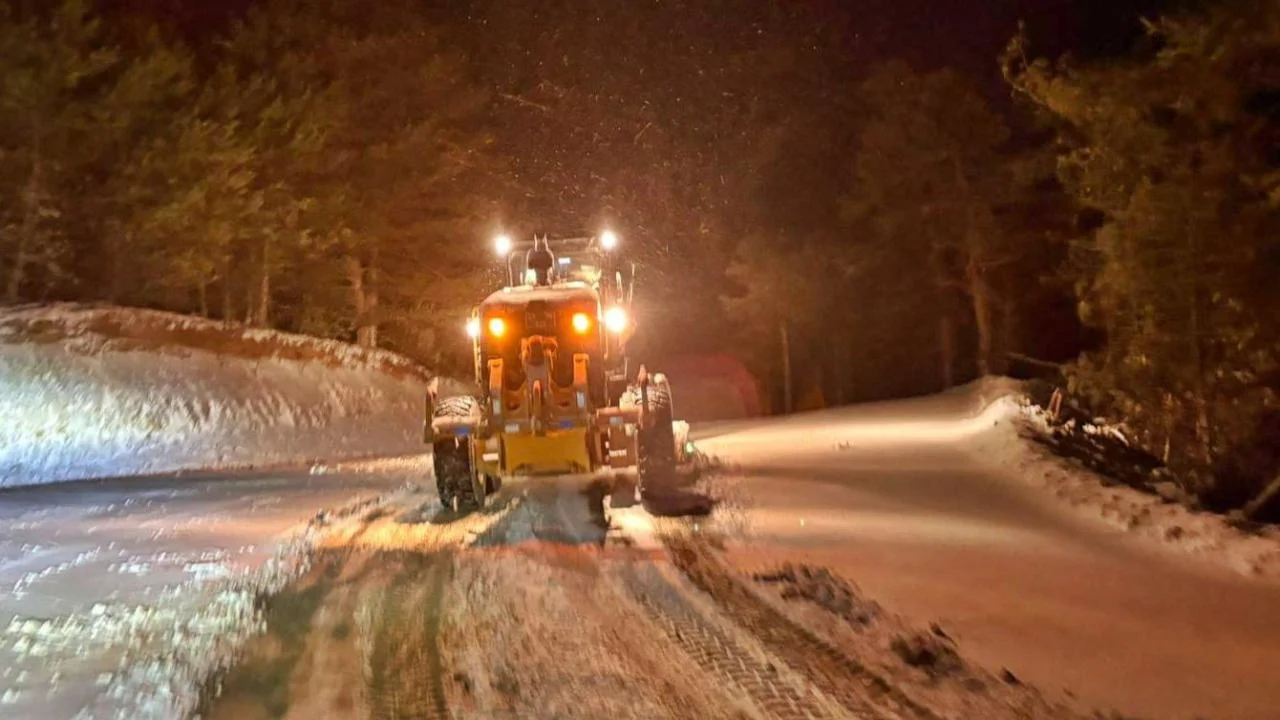 Ekipler Manisa’da yüksek kesimlerde kar yağışıyla birlikte yolların trafiğe kapanmaması için sabah saatlerine kadar aralıksız mesai yaptı.